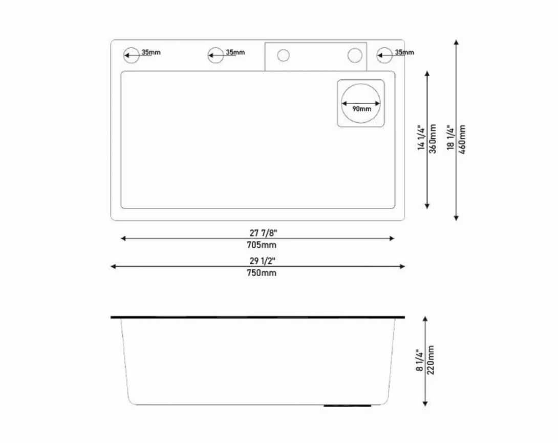 The sink comes with precise measurements — for example, cut-out size 700mm x 350mm and a bowl depth of 22.5 cm — so your countertop can be prepared accurately.
